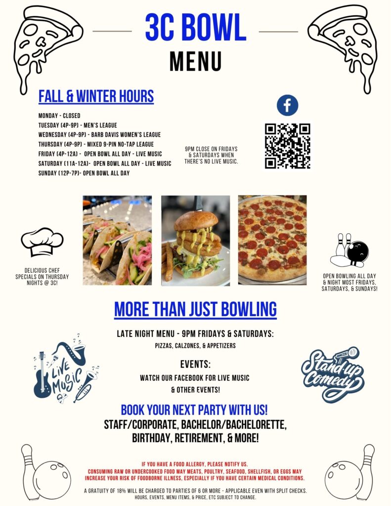 Everything is subject to change without notice or changes to our website, google, Facebook page, etc – This includes, but is not limited to, pricing, open bowling hours, hours, delivery hours and availability, menu items, specials, and more.